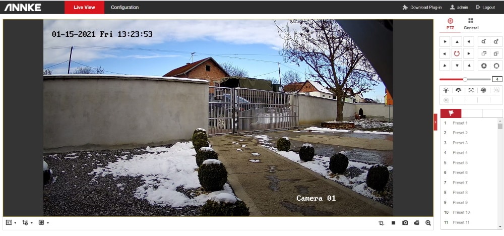 Nakon što se sve hardverski i softverski pošarafalo, Annke NC400 je zapljusnuo ekran snimkom dvorišta i ulice. Kao što vidite, prvo sam snimao po noći, jer sam htio vidjeti kako će se pokazati funkcija snimanja u boji. Rekao sam već da su sve dosadašnje kamere koje sam imao snimale isključivo crno-bijelo u mraku, tako da NC400 predstavlja krupan iskorak u pravom smjeru. Po priloženoj snimci ekrana i vi vidite isto što i ja.