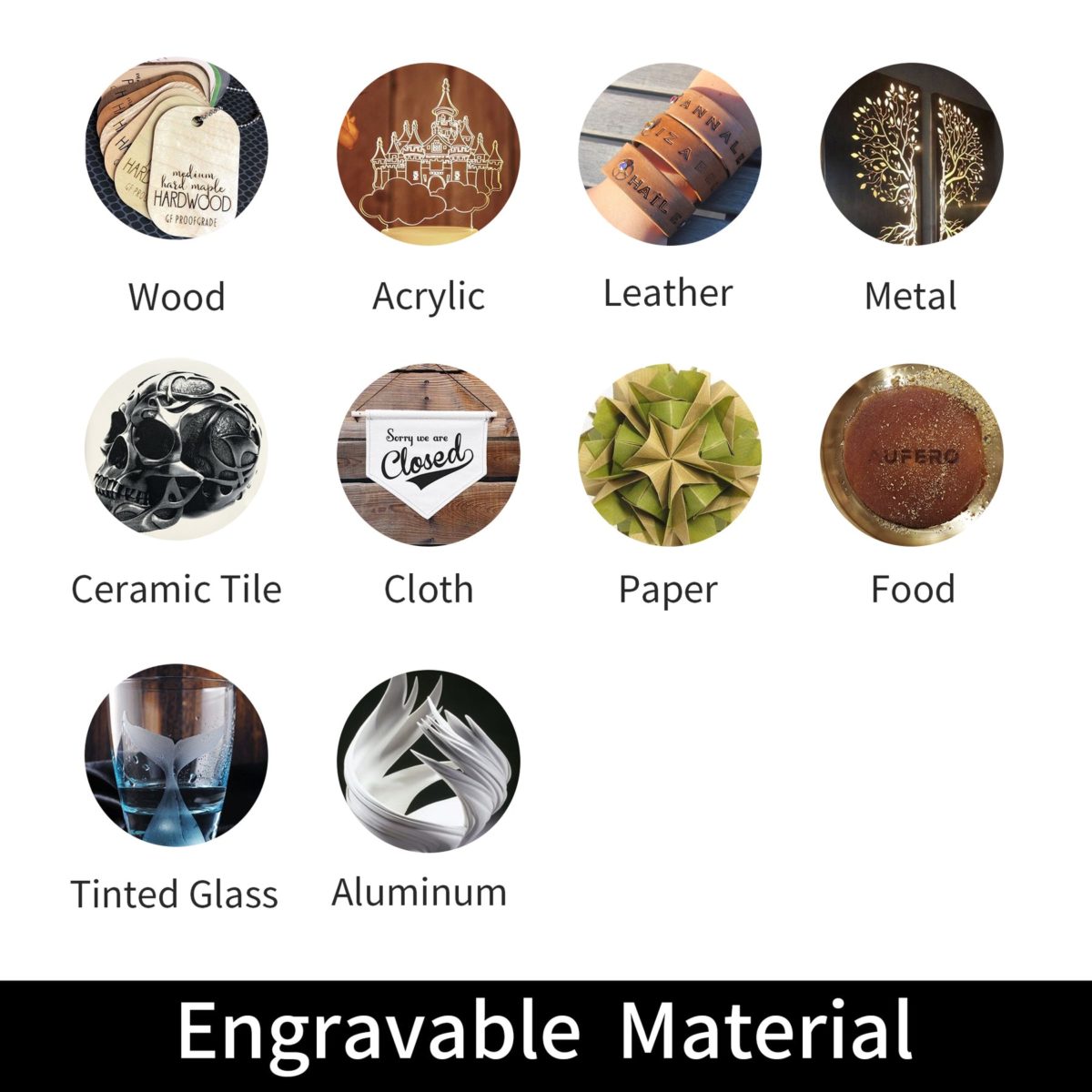 Naravno, najvažnija stvar pri korištenju stroja za lasersko graviranje definitivno je izbor materijala, a Aufero Laser 2 tu vam daje širok izbor mogućnosti.