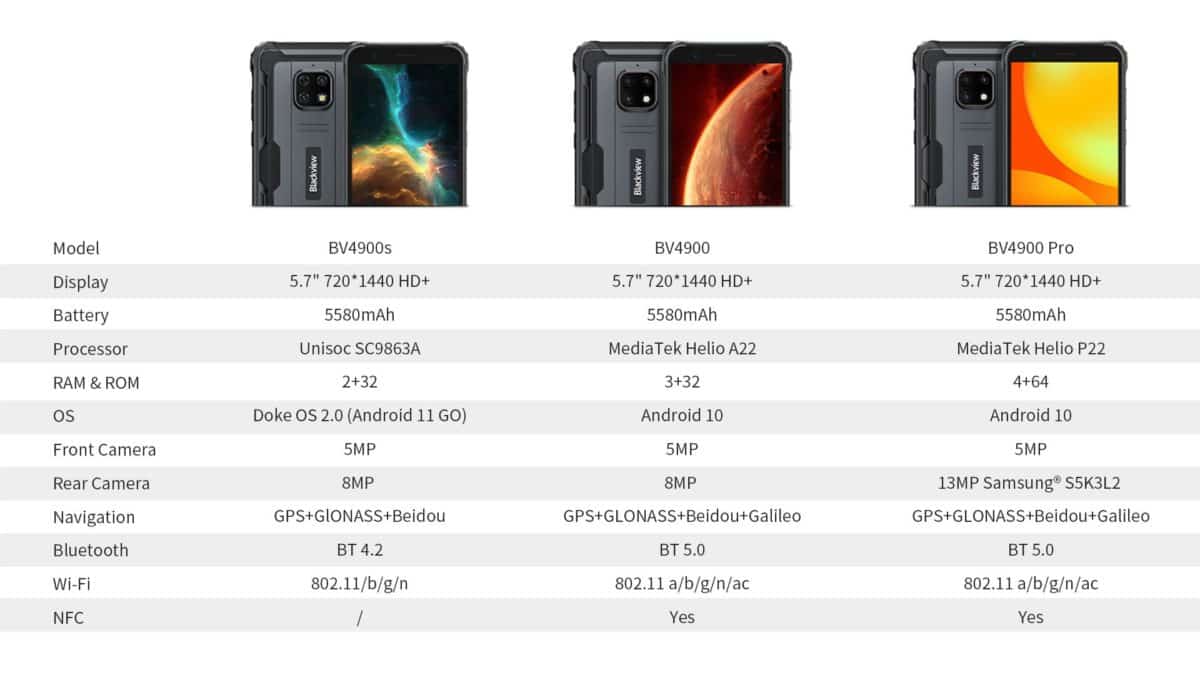 Blackview BV4900s dolazi u dvije varijante – BV4900 i BV4900 Pro, a obje su stekle pozitivne reakcije na tržištu zbog robusnosti i performansi te se vrlo dobro prodaju. Kako bi bolje zadovoljio potrebe korisnika, Blackview je lansirao BV4900s. Iako je uređaj zadržao neke karakteristike iz BV4900 serije kao što su izdržljivost, dizajn, boje (rock black, mountain green, sunset orange, desert yellow), 5,7-inčni HD+ zaslon, baterija od 5580 mAh i kamera od 5 MP, nudi sasvim novi doživljaj korištenja zahvaljujući novim nadogradnjama.