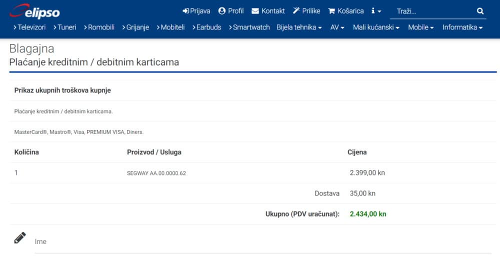 Nakon što ste brzo pronašli ono što vas zanima pomoću naprednog filtera proizvoda :D:D, potrebno ga je dodati u košaricu i ondje popuniti podatke o dostavi. Plaćati možete karticama MasterCard (do 12 rata), Maestro, Visa (do 24 rate), Diners (do 24 rate), ili gotovinom prilikom preuzimanja robe. Paypal nije podržan.