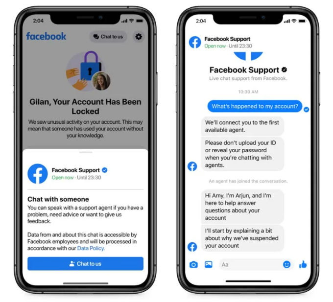 Iz tvrtke Meta su najavili da su započeli s testiranjem chata uživo za neke korisnike koji govore engleski, a kojima su blokirani računi. Također, objasnili su da se prvi test fokusira na one korisnike koji ne mogu pristupiti svom računu zbog neobične aktivnosti ili kršenja pravila Facebook zajednice.