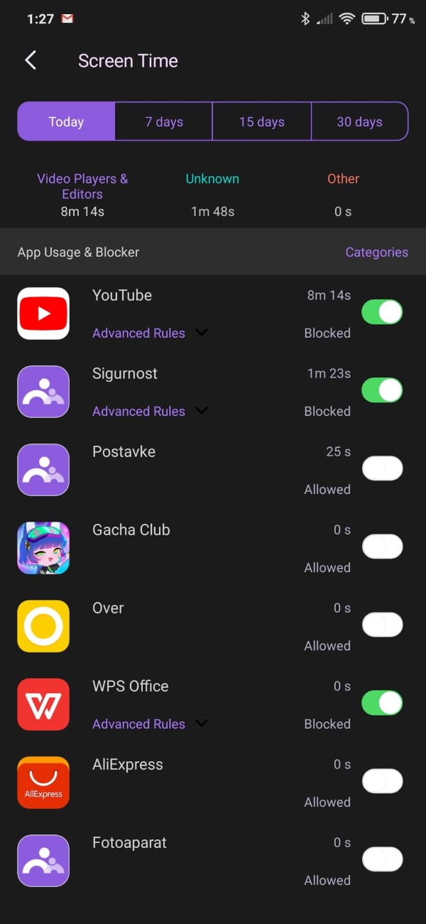 Blokiranje aplikacija (App Blocker) – Postoje aplikacije koje jednostavno nisu za dječje oči. Umjesto da sami kopate po mobitelu, tražeći što su djeca instalirala vama iza leđa, prepustite taj posao aplikaciji FamiSafe. Uz njenu pomoć možete blokirati preuzimanje neke aplikacije, posaviti vrijeme koliko se neka aplikacija može koristiti (sat vremena igranja Among Us dnevno, recimo), ili potpuno blokirati korištenje svih aplikacija dok traje online nastava.