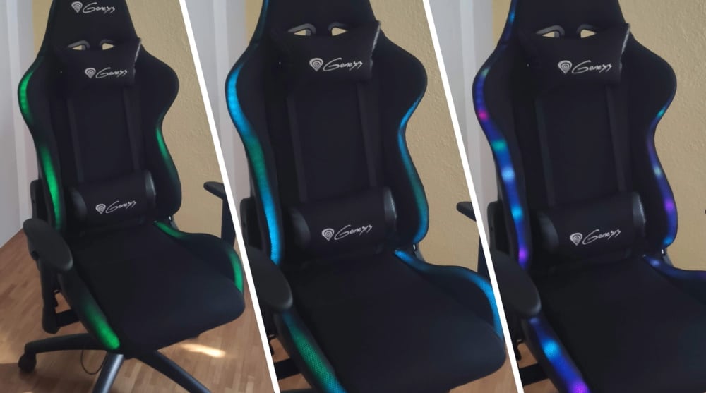 Svojstvo kojim se ova gamerska stolica ističe od konkurencije jest RGB traka, kojom je obložena po rubovima. Traka se proteže od bočne strane sjedala u predjelu koljena, zatim se penje po rubu naslona, obuhvaća cijeli vrh i zatim se spušta istim putem na drugu stranu sjedalice. Svijetli k’o božićno drvce! Odlično izgleda i dobro se vidi i usred bijela dana, dok u mraku izgleda – mrak!