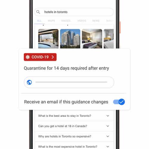 Google pretraga letova, hotela ili drugih stvari vezanih za putovanja, sada će sadržavati i sva upozorenja ili ograničenja vezana za COVID-19. Google je dodao dodatne pojedinosti o ograničenju putovanja, uključujući i informacije je li potrebna karantena, treba li pokazati dokaz o imunizaciji ili samo negativan COVID-19 test.