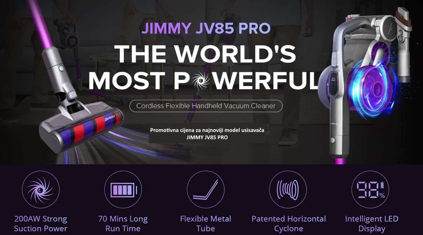 Pogledajte promotivnu stranicu proizvoda JIMMY JV85 PRO. Ako ste se odlučili za kupovinu ovog uređaja, iskoristite promotivni KOD: SMHJV85Z10, pomoću kojeg usisivač JIMMY JV85 PRO možete kupiti za povoljnih €288,79. Napominjemo, uređaj se prodaje sa skladišta u EU, a to znači brzu isporuku na vašu adresu, bez dodatnog plaćanja carine.