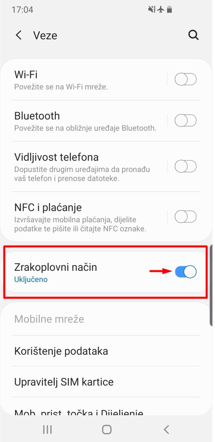 1. Uključite “airplane mode” (zrakoplovni način rada) na vašem mobitelu