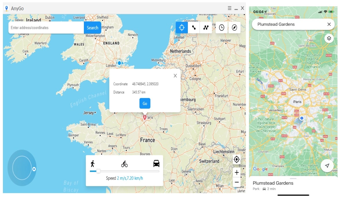 Kad ste jednom odredili svoju lokaciju, možete se teleportirati čak i dalje. Znači, svaki vaš teleport se dešava odmah, a aplikacija vam nudi automatski prikaz koliku ćete udaljenost prijeći ako odete na drugu lokaciju. Za što kvalitetniji prikaz, gornja slika lijevo predstavlja lokaciju unutar aplikacije, dok s desna možete vidjeti kako to izgleda na Google Maps.