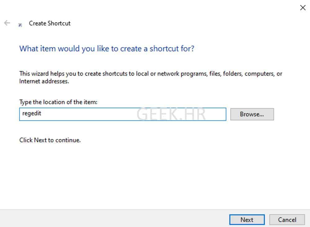 Ako često koristite Registry Editor, za lakše pokretanje najbolje bi bilo napraviti prečac. Za pokretanje Windows Registry Editora, ako to često radite, možete sami izraditi Shortcut.