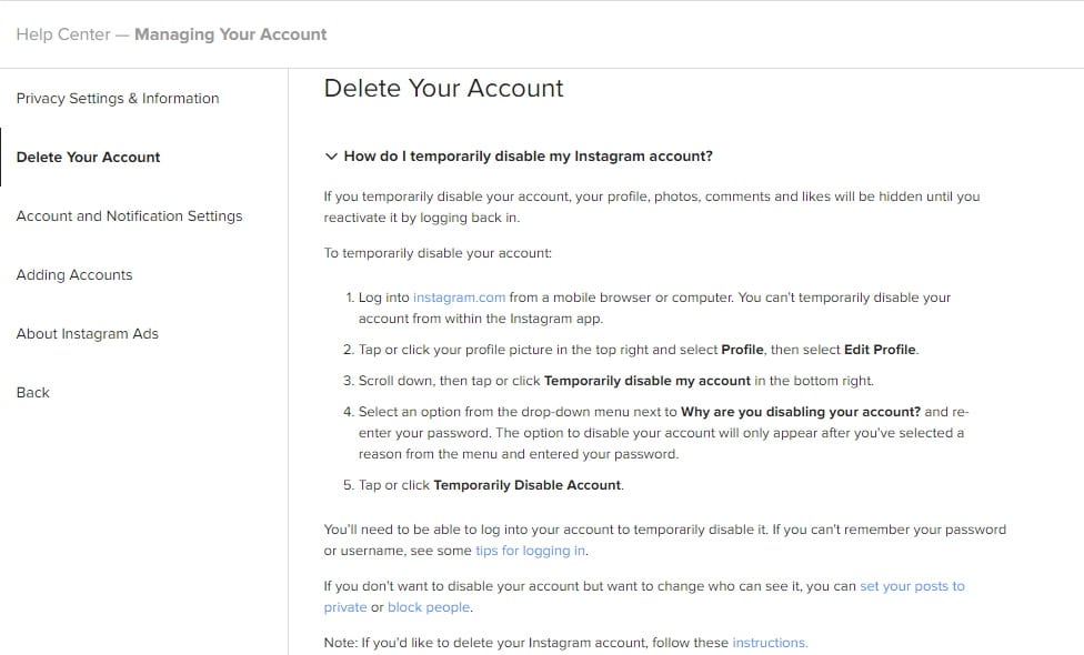 Privremeno isključiti Instagram profil je svakako bolja opcija, koja vam daje vremena da razmislite želite li zaista obrisati kompletan Instagram profil, ili ipak ne. Jednom kada ste obrisali vaš profil, nećete ga moći vratiti natrag.