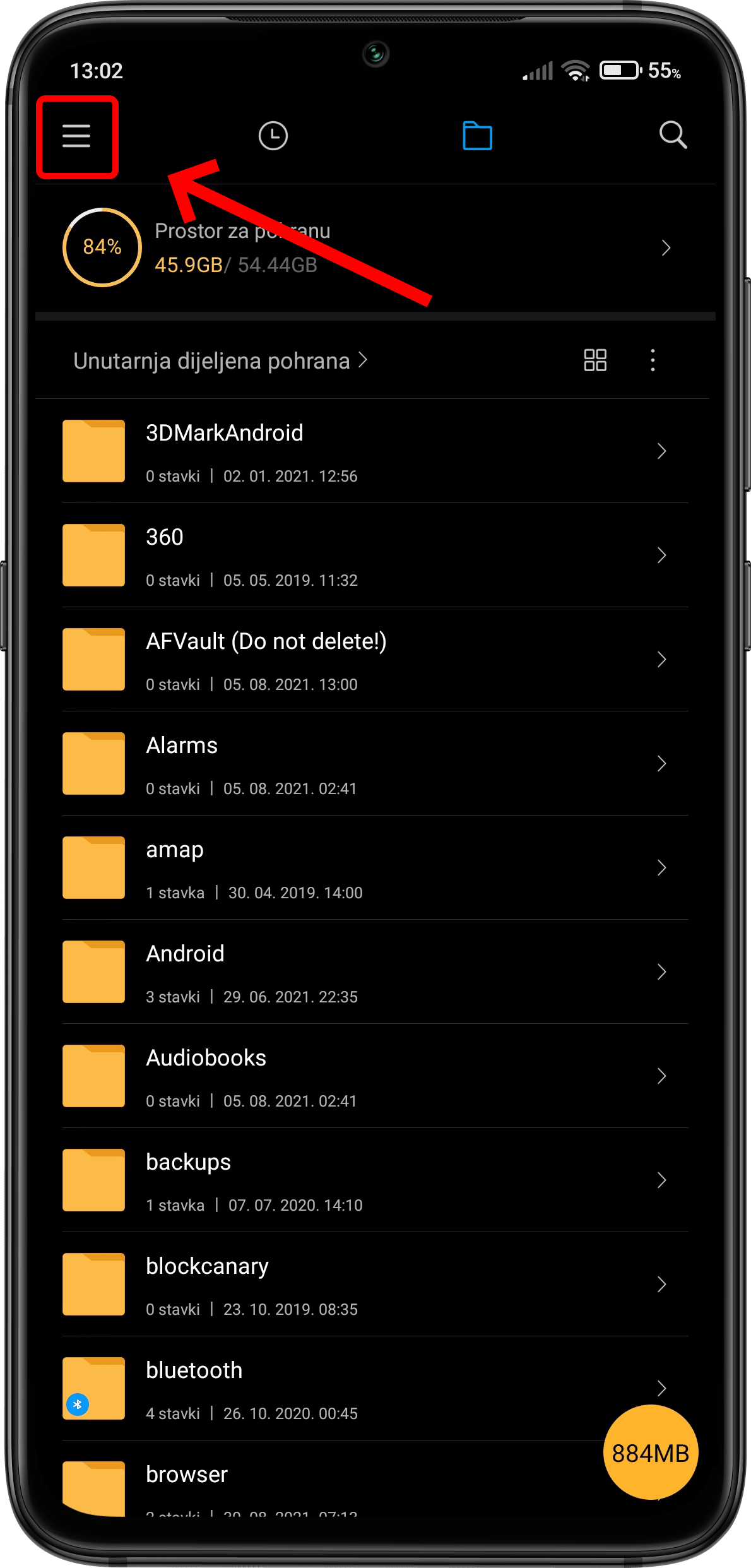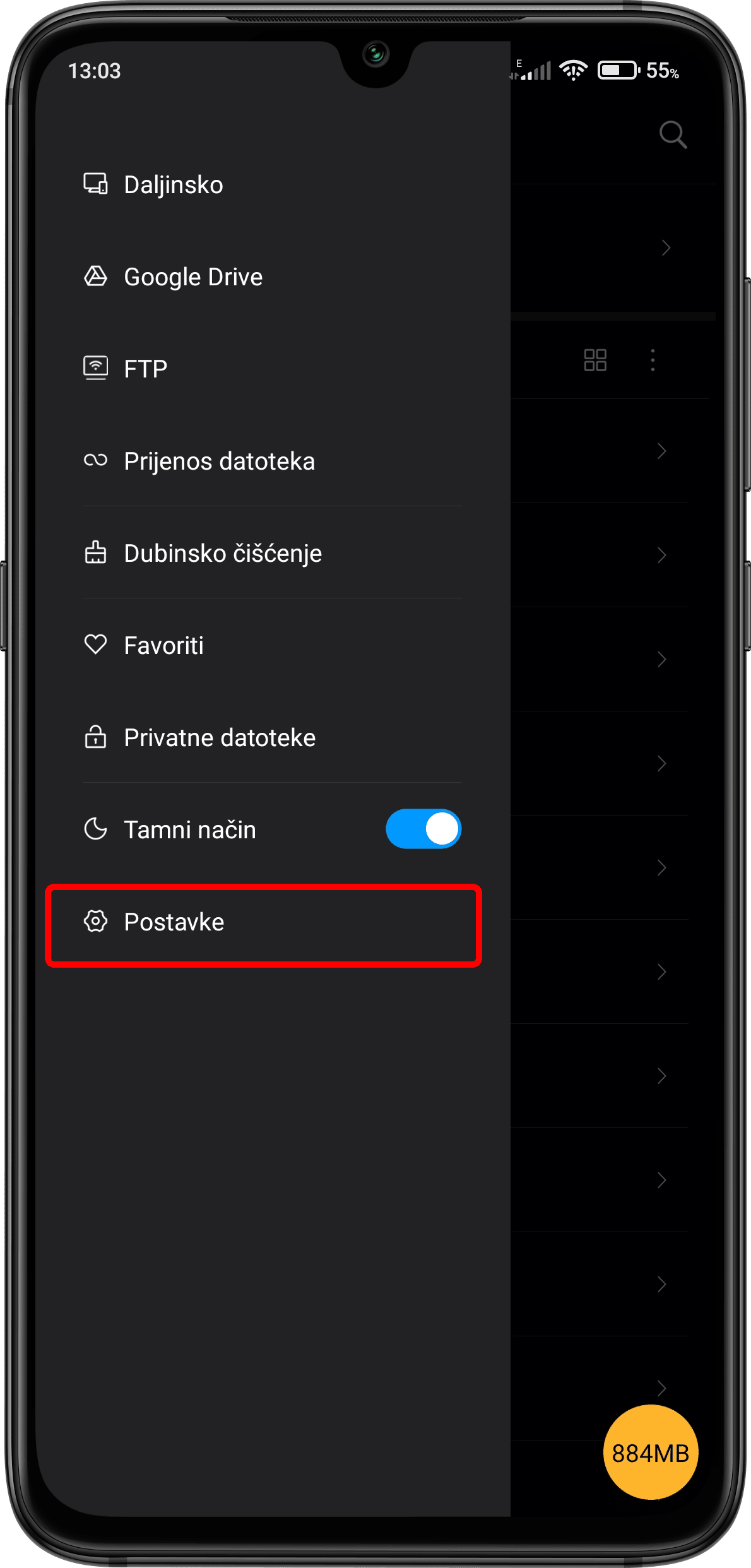 Unutar File Managera dodirni tri vodoravne crte gore lijevo. Potom izaberi ‘Postavke’.