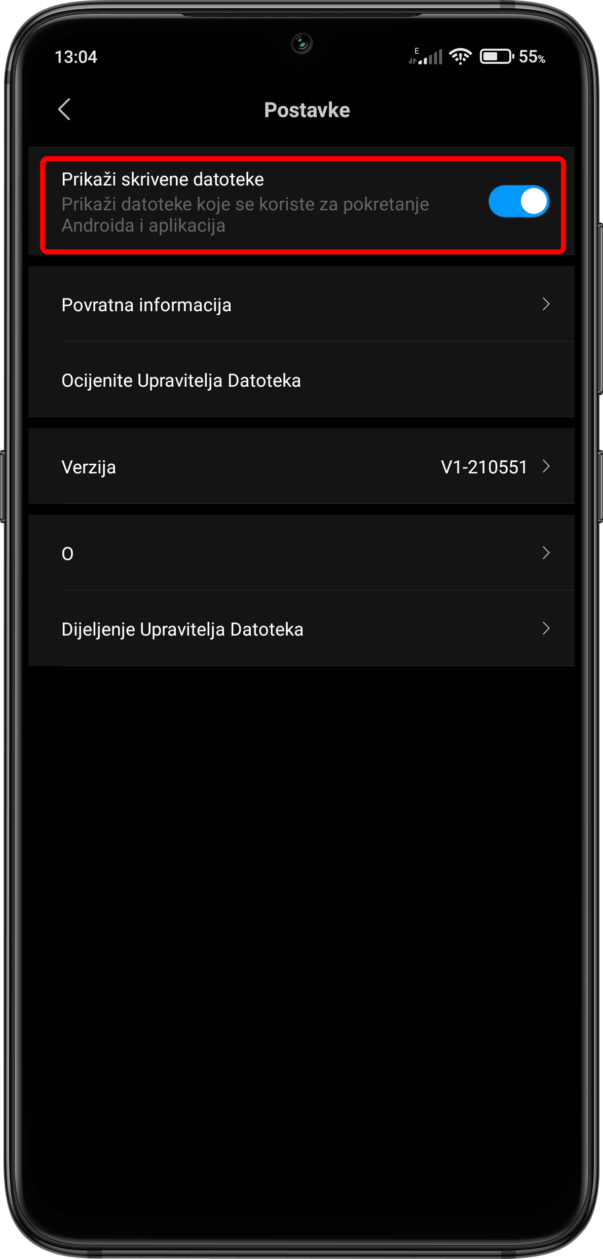 Da bi skrivene datoteke postale vidljive, u opcijama File Managera je potrebno uključiti opciju ‘Prikaži skrivene datoteke’. Nakon toga bit će vidljive sve datoteke za koje Android smatra kako im korisnici ne trebaju imati pristup. Najtoplija preporuka je da tako i ostane, stoga nemoj mijenjati niti brisati niti jednu od njih.