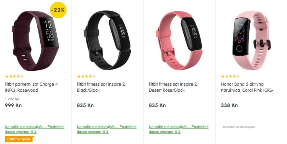 Ugodno sam se iznenadio i s ponudom tableta, kojih ima preko 130. Iako je njihovo zlatno doba prošlo, još uvijek stižu na tržište u respektabilnom broju. Dojma sam kako još samo Apple ostvaruje ozbiljnu zaradu na njima, ali svejedno tu su još Samsung, Huawei i brojni drugi manji proizvođači. Ako volite čitati, svakako pogledajte što se nudi od e-čitača. Među pametnim satovima opet dominira Apple, a u stopu ga prate Samsung i Garmin. Best-buy opcija bi bio Amazfit, kojeg i sam koristim. Postoje i nešto ekskluzivniji primjerci iz svijeta mode koje predvodi Emporio Armani. Eto rješenja za sve vas koji ste modno osviješteni, ali Apple vam djeluje previše seljački. Sportaši će cijeniti pametne narukvice, a upozoravam vas kako su Xiaomi Mi Band 5 i Amazfit Band 5 jedna te ista stvar. Amazfit proizvodi taj gadget za Xiaomi, ali ga prodaje i pod vlastitim imenom.