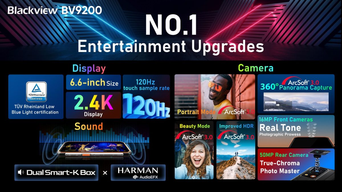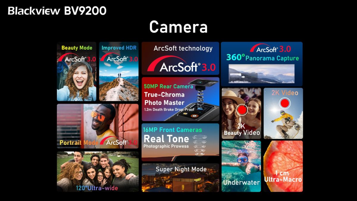 Osim toga šuška se da će novi Blackview BV9200 imati implementiranu ArcSoft® tehnologiju, čiji će algoritam rezultirati s 15% boljim fotografijama kroz dostupne načine rada kamere. Tako će HDR mode ponuditi izvrsne snimke u situacijama visokog kontrasta, Beauty mode inteligentno će usavršiti vaš izgled, Portret mode istaknut će središnje objekte zamućenom pozadinom, dok će Panorama mode ponuditi kompletan krajolik u jednoj slici. Uz gore navedene načine rada, dodani su i neki novi – Super Night mode, Video Recording with Beauty i Underwater mode.