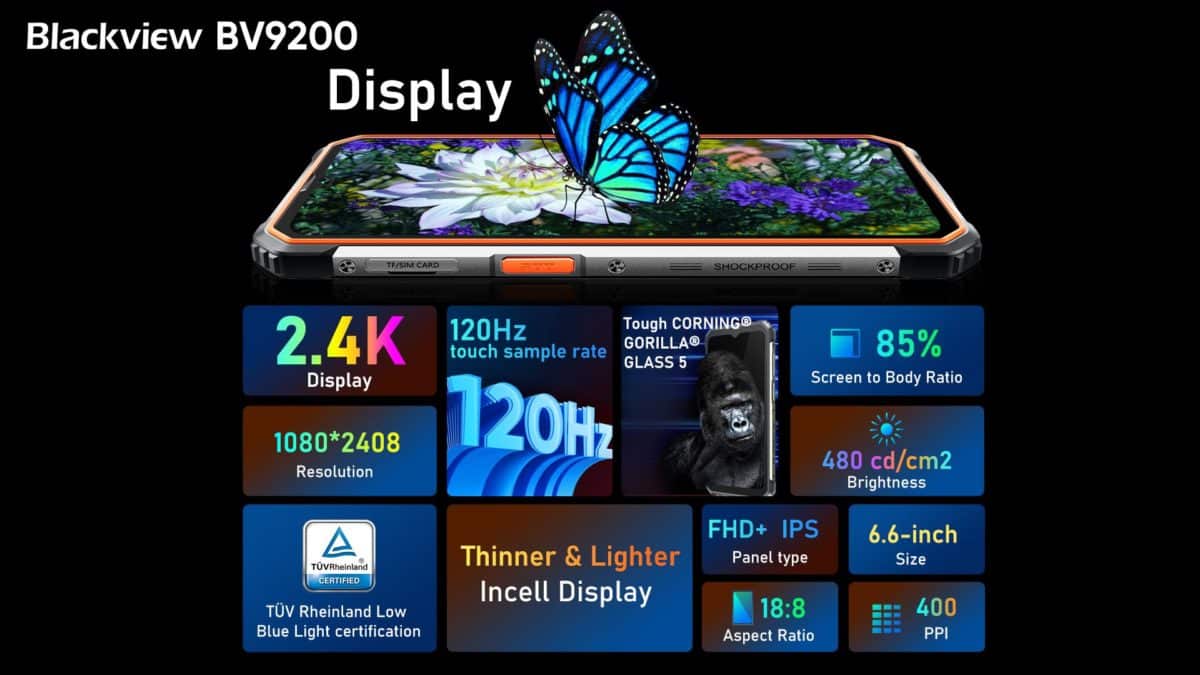 Blackview BV9200 ponudit će korisnicima praktičan zaslon veličine 6,6, inča, s rezolucijom od 2,4K u kombinaciji s brzinom osvježavanja od 120 Hz. Ovakve karakteristike uređaju pružaju oštriji i jasniji prikaz koji će korisnicima omogućiti užitak pri korištenju bez ograničenja. Osim toga, zaslon posjeduje TÜV Rheinland Low Blue Light certifikat, što znači da je opasno plavo svjetlo smanjeno kako bi se osiguralo da su oči bolje zaštićene kada se telefon koristi dulje vrijeme. Značajno je spomenuti i da je zaslon BV9200 opremljen CORNING® GORILLA® GLASS 5, što podiže ljestvicu zaštite od oštećenja uslijed padova i ogrebotina, omogućavajući korisnicima rad na otvorenom bez ikakvog straha.