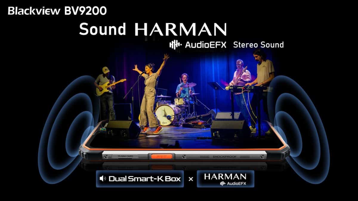Blackview BV9200 će po prvi put podržavati Harman AudioEFX tehnologiju, koja sadrži 5 različitih glasovnih načina: Smart, Music, Movie, Games i Voice, što korisnicima omogućuje uživanje u visokoj kvaliteti zvuka u svakom trenutku. Ono što će dodatno razveseliti ljubitelje dobre zabave je da je uređaj opremljen s dva pametna PA BOX zvučnika, potpuno prilagođena novo Blackview BV9200 uređaju, a koji će korisnicima pružiti najbolju kvalitetu zvuka čak i pri maksimalnoj glasnoći.
