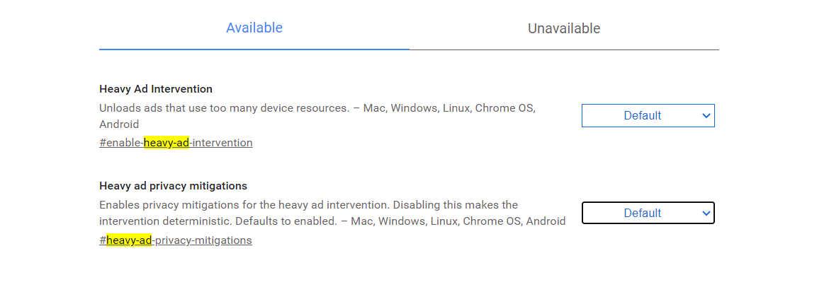 - U donjem izborniku uz “enable-heavy-ad-intervention” odaberite Omogućeno (Enabled)