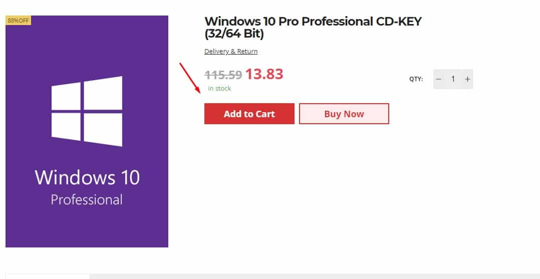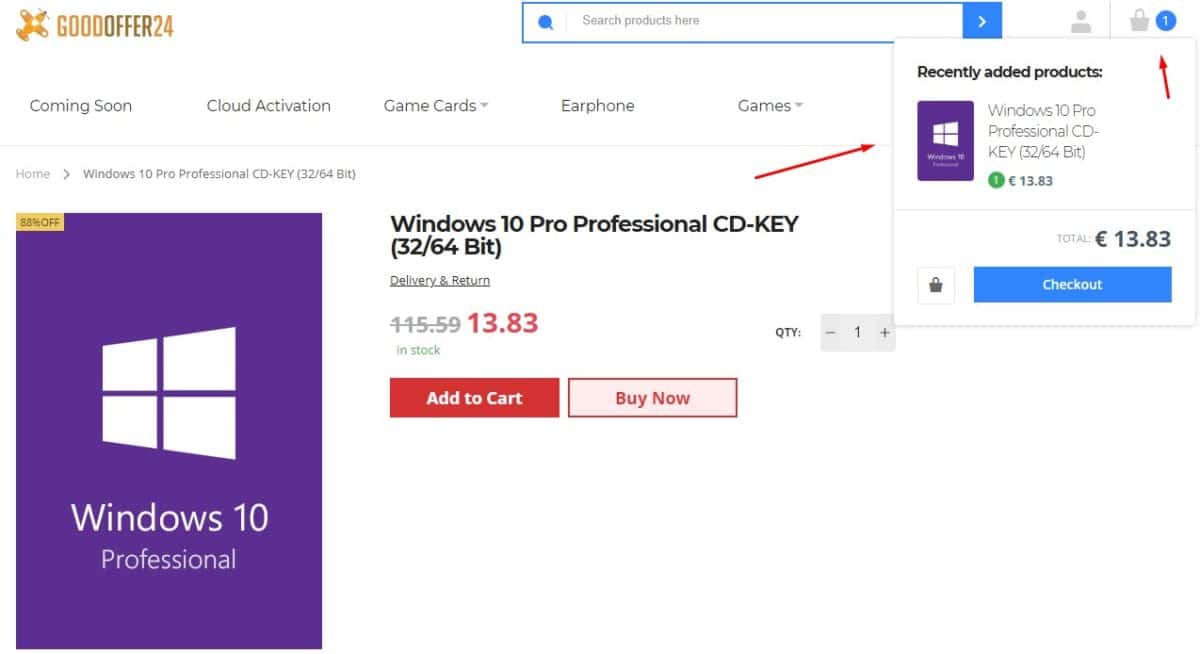 Uz najpovoljnije cijene i ekspresnu dostavu, Goodoffer24 nudi nikad jednostavniju kupnju. Primjerice, ako želite kupiti Windows 10 Pro, prvo trebate odabrati željeni proizvod i kliknuti na “Add to Cart” ikonicu.
