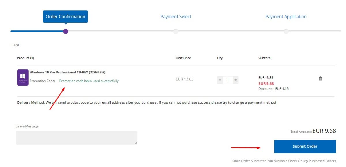 Unesete kuponski kod “GE30” u prozor za to predviđen i odaberete opciju “Submit Order”.