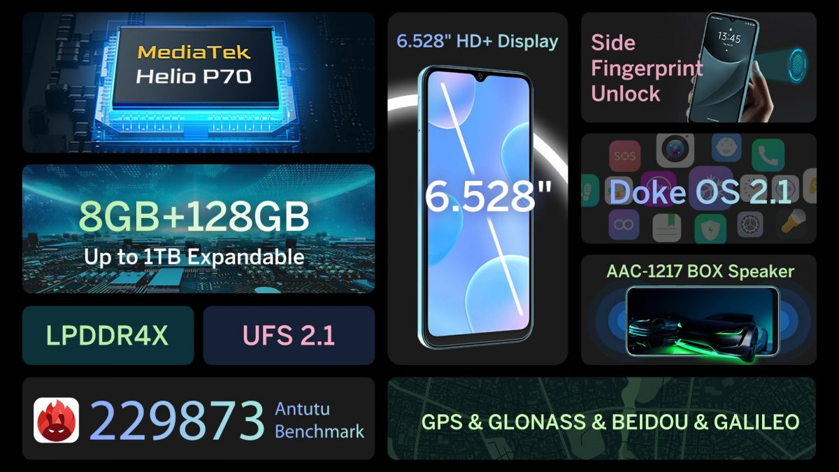 Kako bi pomogao korisnicima da izvuku maksimum iz Blackview pametnih telefona, Blackview je razvio Doke OS uz godine istraživanja. Blackview A95 tako pokreće nova verzija OS 2.1. U usporedbi s verzijama OS 1.0 i OS 2.0, dosljednost vizualnog dizajna, praktičnost i glatkoća, svjedoci su velikog napretka. Na primjer, Doke OS 2.1 ima redizajnirane pozadine, ikone i druge elemente kako bi bili koherentniji i dosljedniji cjelokupnom vizualnom prikazu. On optimizira sve, od animacija do navigacije gestama za veći odziv i učinkovitost.