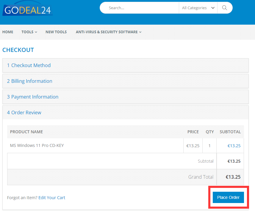 - Provjerite svoju narudžbu, a zatim kliknite na “Place Order”.