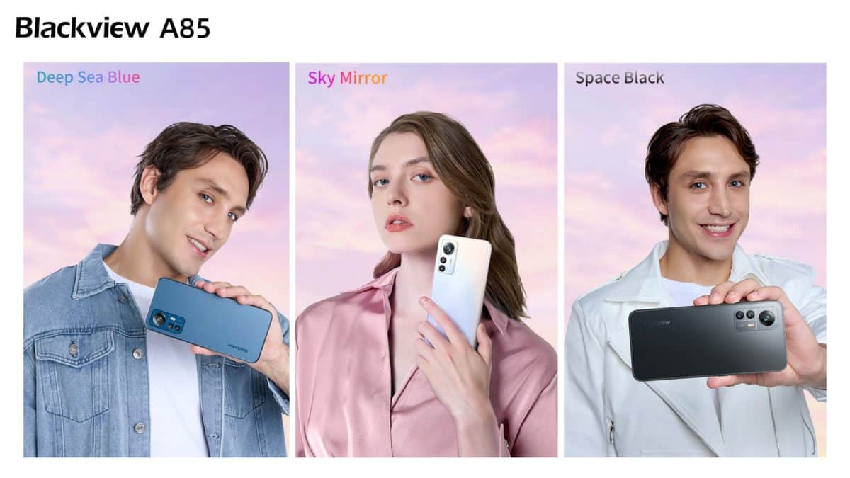Prethodne glasine sugerirale su da će Blackview A85 vjerojatno imati tri varijante boja – Sky Mirror, Space Black i Deep Sea Blue. Čini se da će to biti upravo tako, boje će biti vrlo dojmljive i prepoznatljive, posebno Sky Mirror, koja svoju inspiraciju crpi iz tajanstvenog i sanjivog neba. Boje neba savršeno su uklopljene u proizvod te se prenosi mješavina prizora i boje u različito doba jutra, podneva i noći, donoseći osvježavajući umjetnički užitak korisnicima.