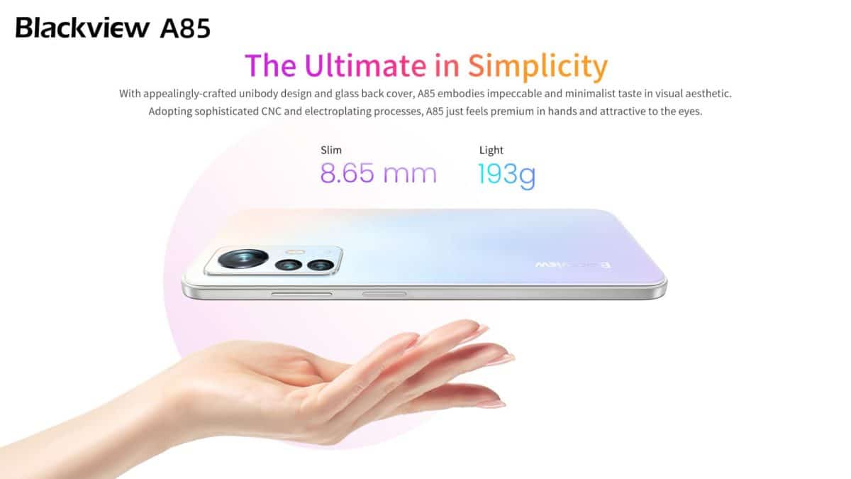 Što se tiče estetike uređaja, najimpresivnija stvar je težina samog mobitela. Blackview A85 može se pohvaliti težinom od samo 193 grama i debljinom od samo 8,44 mm. Teško je zamisliti da se pametnim telefonom visokih performansi može upravljati tako lagano. Tijekom korištenja, Blackview A85 omogućit će vam ugodan osjećaj bez opterećenja, čak i ako ga dugo držite u ruci.