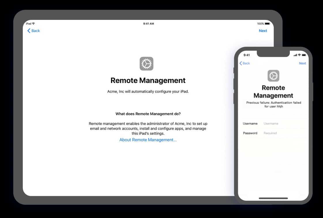 MDM(engl. Mobile Device Management – rukovođenje mobilnim uređajem) zaključavanje omogućuje vlasnicima uređaja bežično konfiguriranje i stvaranje profila koji se ne mogu mijenjati bez administrativnog pristupa. To uključuje ograničavanje Apple uređaja tako da ne može upućivati određene pozive, koristiti neke aplikacije ili raditi bilo što osim onoga što je vlasnik odredio.