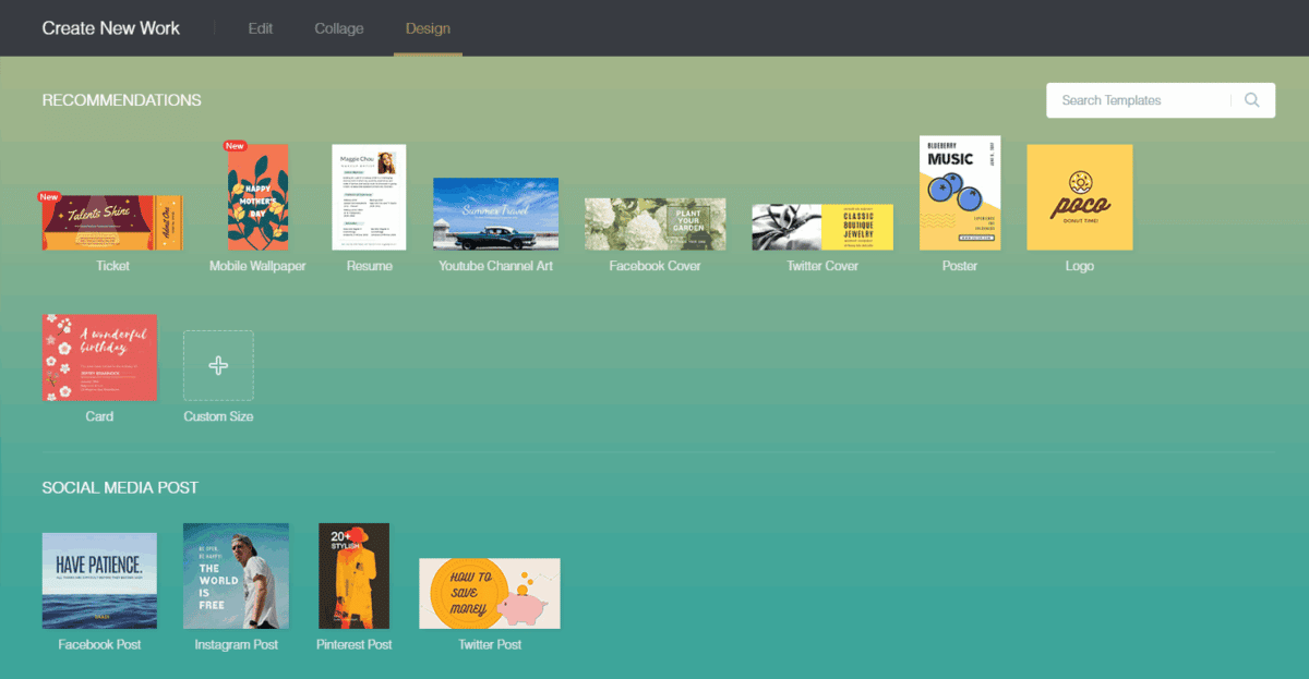 Osim navedenih Fotor sadrži i neke dodatne značajke poput kreiranja covera za Facebook i Facebok Events, YouTube, LinkedIn i nekoliko drugih društvenih mreža. Za izradu bilo kojeg od dizajna potrebno je kliknuti na opciju Create a Design. Dovoljno je odabrati za koju od navedenih društvenih mreža trebate napraviti cover i aplikacija će sama prilagoditi veličinu odabrane slike za tu društvenu mrežu. Odaberite pozadinu koja vam se sviđa u omjeru po vašoj potrebi i dodajte tekst s fontovima plakata, dodajte prekrasne naljepnice, dodajte svoje slike iz galerije i stvorite savršenu objavu svaki put. Napravljene radove možete jednostavno s jednim klikom podijeliti na Facebooku, Twitteru i ostalim popularnim servisima. Neki alati zahtjevaju prethodnu registraciju i članstvo u Fotor Pro verziji.