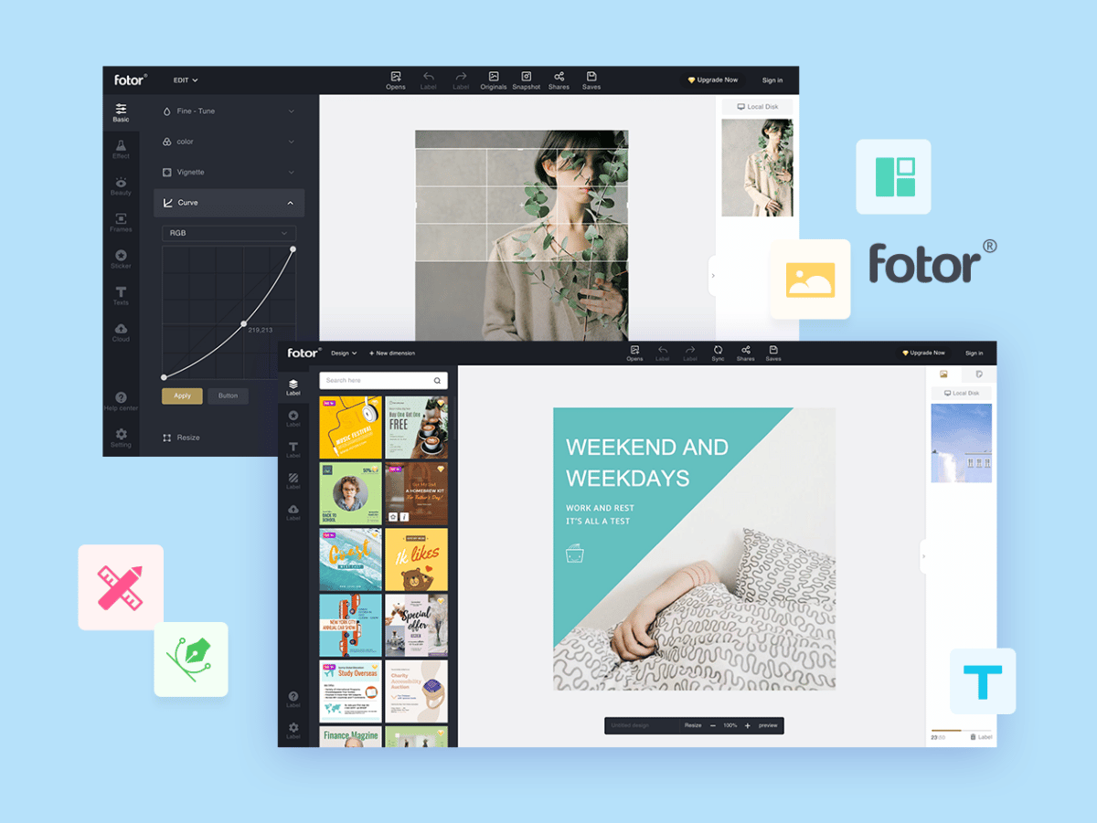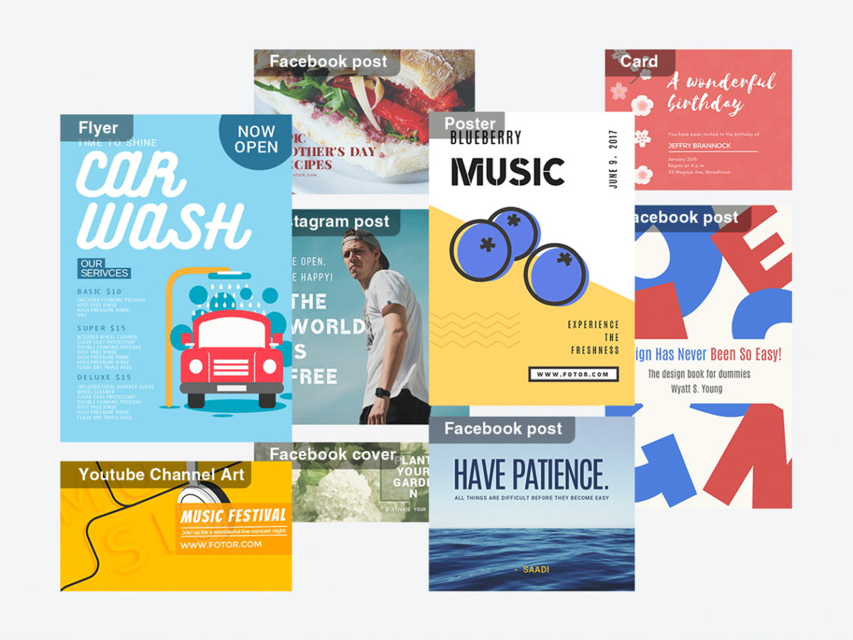 Želite li stvoriti promotivne plakate, oglašavati, objaviti najave, pokrivati fotografije za svoju trgovinu, restoran, ured ili društvene web stranice? Ako da, onda je Fotor savršen odabir za vas. Izradite promotivne plakate, oglašavajte, objavite najave, pokrivajte fotografije u pokretu uz nevjerojatne pozadine, teksturu, efekte, fontove, naljepnicu i privucite pozornost koju želite.