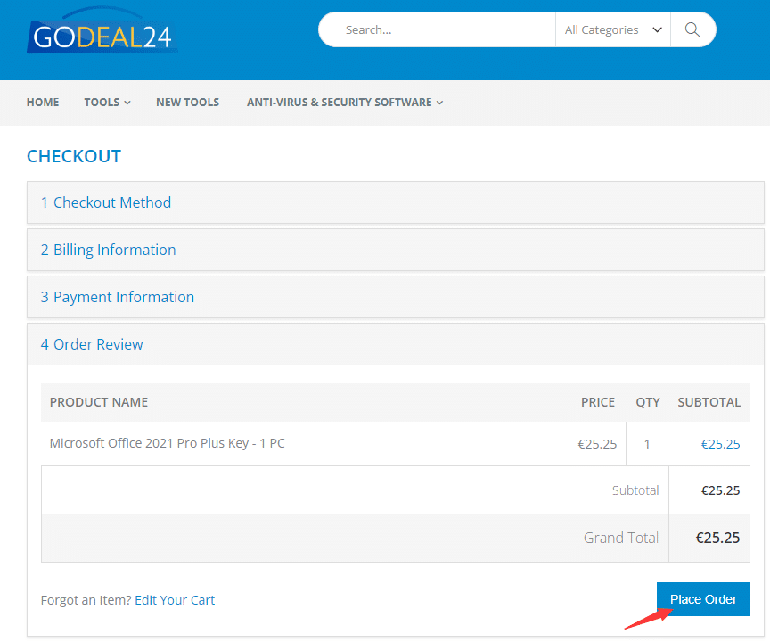 - Molim vas da provjerite svoju narudžbu i kliknete “Place Order”.