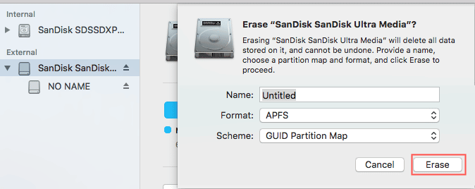- Kliknite Erase i pričekajte da SD kartica bude formatirana.