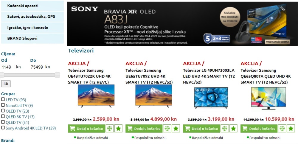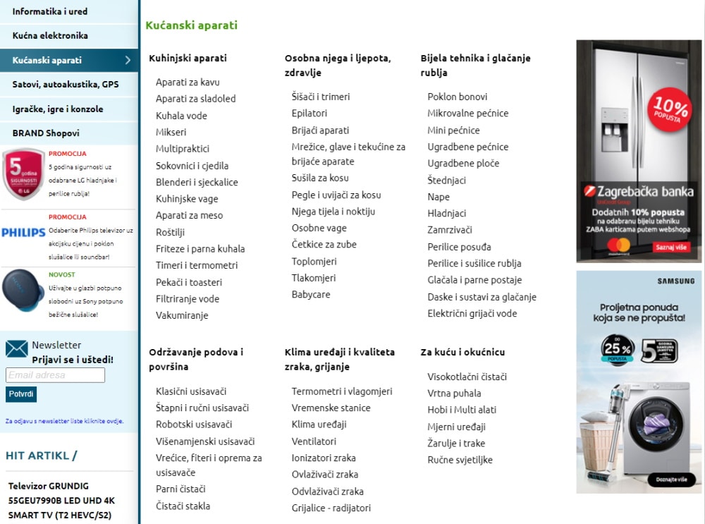 S druge strane, nema smisla ponavljanje jednog te istog. U izborniku iznad slidera naći ćete karticu ‘Akcije i rasprodaje’, a odmah do nje stoji kartica ‘Best price i novo’. U njima se neki proizvodi papagajski ponavljaju, što ostavlja krivi dojam odlično popunjenog webshopa. Na vrhu stranice, desno od kućice za pretragu, nalazi se banner za ponudu tjedna. Tu se nalaze artikli koji su na posebnom popustu samo za određeni tjedan u godini, ali ne morate se previše zamarati pretraživanjem ondje. Sadržaj je više ili manje isti kao u dvije ranije spomenute kartice. Neozbiljno.