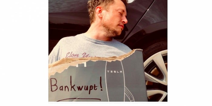 Elon Musk je objavio Teslin apsolutni bankrot. Također je naglasio da je bankrot nastupio po svim poglavljima te da je Elon, glavom i bradom, pronađen mrtav pijan uz Tesla model 3 s bocama “Teslaquille”.