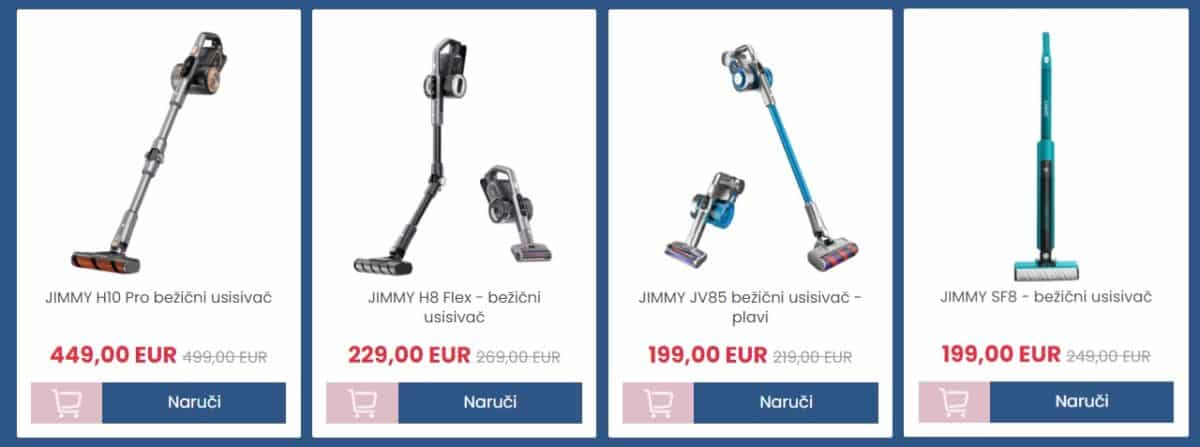 Brend Jimmy nudi nekoliko različitih vrsta proizvoda, među njima i bežične usisivače. JIMMY H10 Pro jeftiniji je za 50 eura te ispod njega sada piše 449 eura, dok je JIMMY H8 Flex s cijenom od 229 eura duplo jeftinije rješenje. Cijene idu još niže – JIMMY JV85 i JIMMY SF8 stoje 199 eura.