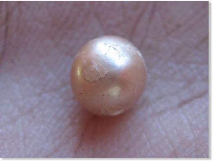 Biser je skoro savršenog okruglog oblika s ružičastim sjajem i promjera od oko pet milimetara. Starost bisera je određena pomoću rendgena i usporedbe s postojećim biserima. Biser se nalazio u jami otpada koja se koristila za rituale.