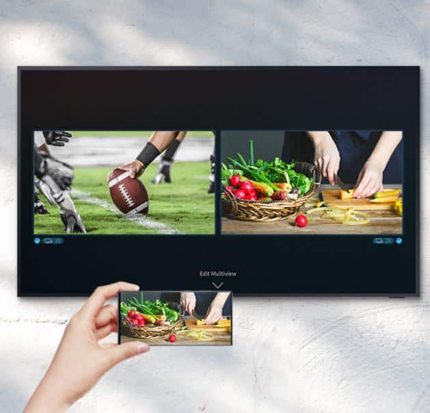 Isto tako, kad ovaj televizor povežete sa svojim Samsung pametnim telefonom, tek ćete tada otključati sto čuda. Sve što se događa na zaslonu mobitela možete jednostavno zrcaliti na televizor. Posebno je upečatljiva Multi View funkcija, pomoću koje možete istovremeno gledati trenutni sadržaj na jednoj strani, a zrcaljenu sliku s mobitela na drugoj strani The Terrace.
