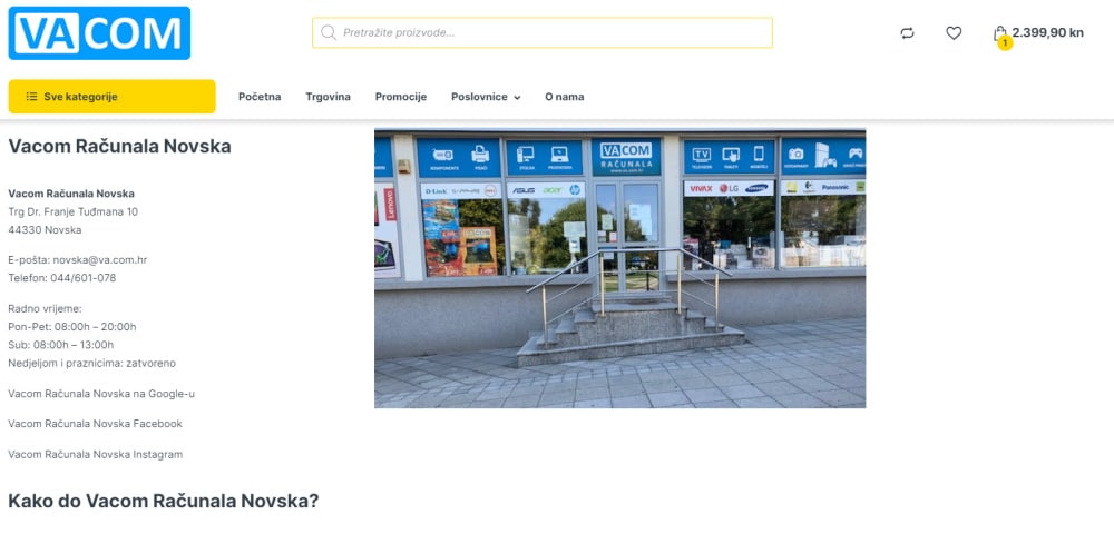 Vacom.hr je tipičan webshop IT opremom. S onim što imaju u ponudi možete kvalitetno opremiti svoj ured ili kuću. Slider na glavnoj stranici funkcionira po istom principu kao i bilo gdje drugdje: gura vam pod nos akcijsku robu, ili onu koje se trgovac najprije želi riješiti. Lijevo od slidera je popis kategorija, koji bi trebao pomoći u snalaženju na stranici. Trebao bi, ali to ne čini, nego izaziva vrtoglavicu.