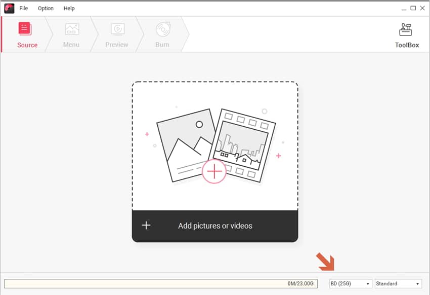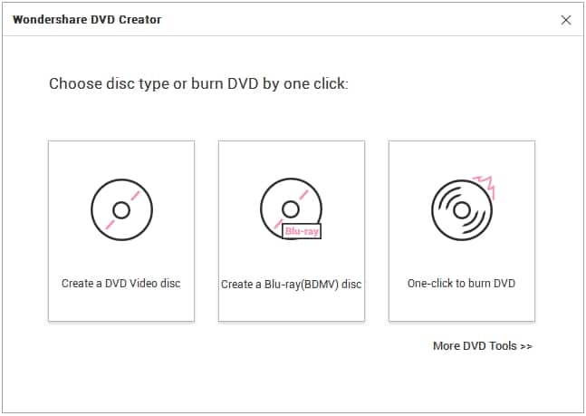 Korak 1: Ovdje je, naravno, potrebno pokrenuti program. U početnom prozoru dobit ćete opcije za kreiranje DVD video diska, Blu-Ray diska ili možete jednostavno kliknuti na One-Click za trenutno prženje sadržaja na disk. Obratite pozornost na donji desni kut; ondje je link na još više opcija, kojima možete fino podešavati što ćete raditi. Preporučam da, ukoliko ste entuzijast i volite to što radite, svakako proučite i tu mogućnost.