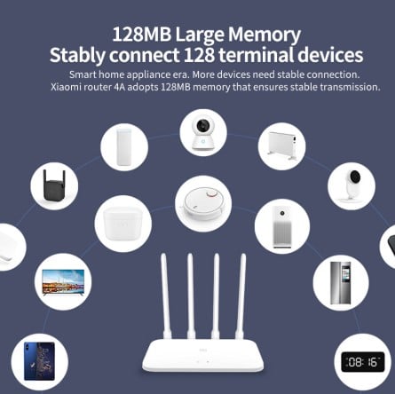 Već samim izgledom sa četiri antene koje signal šire u svim smjerovima i posljednjom 802.11 ac Wi-fi tehnologijom brzine 1167Mbps ovaj bežični ruter ulijeva povjerenje. Xiaomi Mi Wi-Fi 4A Gigabit Edition Router dolazi sa 128 MB ROM-a što je nekoliko puta više od tipičnih usmjerivača za fluidan rad neovisno o tome što radiš na internetu. Paralelno omogućava priključenje od preko sto različitih uređaja, dok mu je kučište napravjeno od posebne legure plastike koja se ne pregrijava.