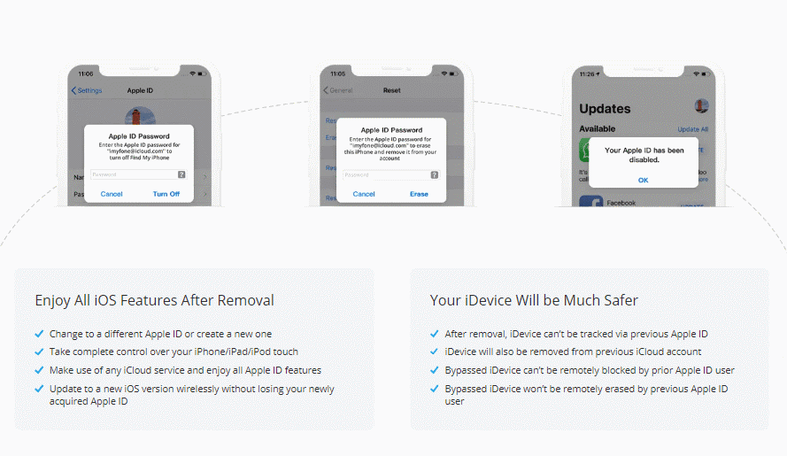 Što napraviti u slučaju kada ste zaboravili lozinku, ne radi vam čitač otiska ili jednostavno ne možete otključati vaš Apple uređaj? Postoji rješenje za takve prilike. Poseban softver iMyFone zaobilazi spomenute zaštite za povezivanje s Apple servisima, kao što je Apple ID, i druge spomenute u gornjem dijelu teksta. Ova aplikacija uspješno uklanja Apple ID sa iPhone, iPad i iPod uređaja, bez potrebe za unosom lozinke. Jednostavnim korištenjem opcije iMyFone LockWiper za iOS, s iPhone, iPad ili iPod uređaja možete obrisati lozinku, da bi pristupili nekom od spomenutih uređaja. Nakon što ste uklonili lozinku, možete iskoristiti sve prednosti iOS-a koje imate kada kupite novi uređaj.