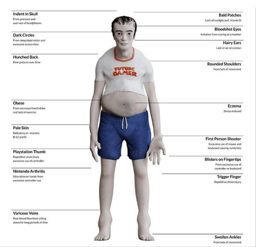 Činjenica je da danas sve veći broj djece i tinejdžera provodi vrijeme prikovao uz ekrane igrajući igrice, što u situaciji nužne kućne izolacije još više dolazi do izražaja. Zato je kanadski site Online Casino proveo istraživanje o navikama gamera, na osnovu kojeg su nastali crteži koji prikazuju kako bi današnji gameri mogli izgledati kroz dva desetljeća.