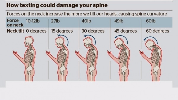 Ljudska glava je teška gotovo pet kilograma pa svako naginjanje naprijed dosta napreže vrat. Preciznije, napreže stražnji dio vrata od kvrge okcipitalne kosti pa do izbočine koju čini šiljasti nastavak sedmog vratnog kralješka. Snažni mišići toga predjela uspravljaju glavu i naginju je natrag. Od učestalog naginjanja, smatraju stručnjaci, nastaje i takozvani tekstualni vrat.